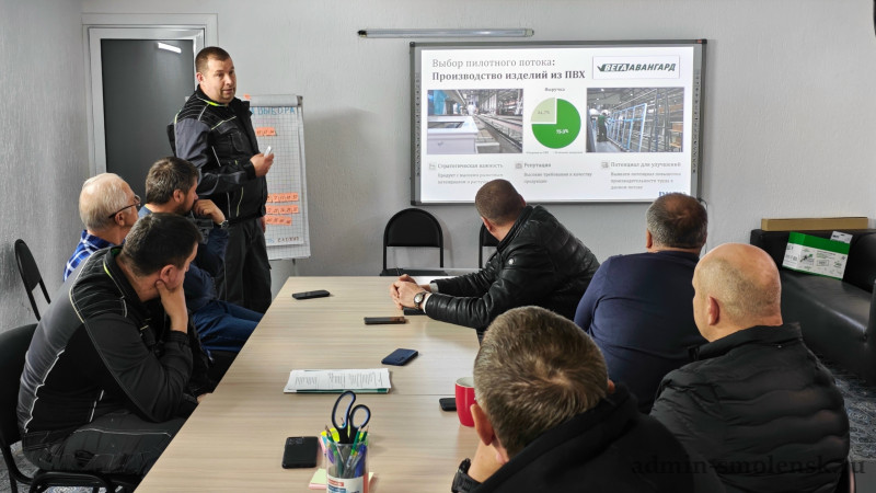 В течение этапа «Диагностика и планирование» участниками рабочей группы совместно с РЦК Смоленской области было проведено всестороннее исследование потока «Производство изделий из ПВХ», выявлены проблемы и потери, изысканы резервы по увеличению производительности труда, определены цели по оптимизации пилотного потока, составлен и утвержден план-график мероприятий на ближайшие три месяца Программы.
