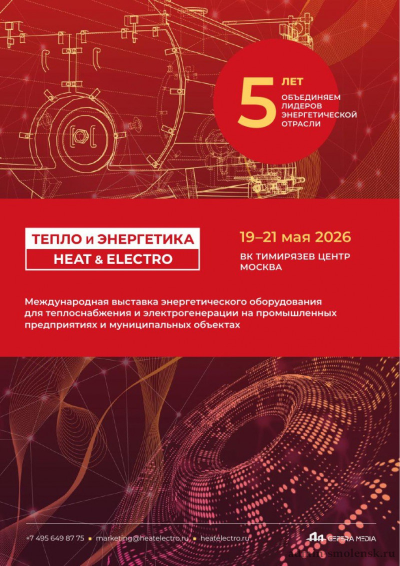 19-21 мая 2026 года Российская выставочная компания «Гефера Медиа» проводит 5-ю Международную выставку энергетического оборудования для теплоснабжения и электрогенерации на промышленных предприятиях и муниципальных объектах «Тепло и Энергетика/Heat&Electro», которая состоится в УВЦ «Тимирязев Центр» в Москве.