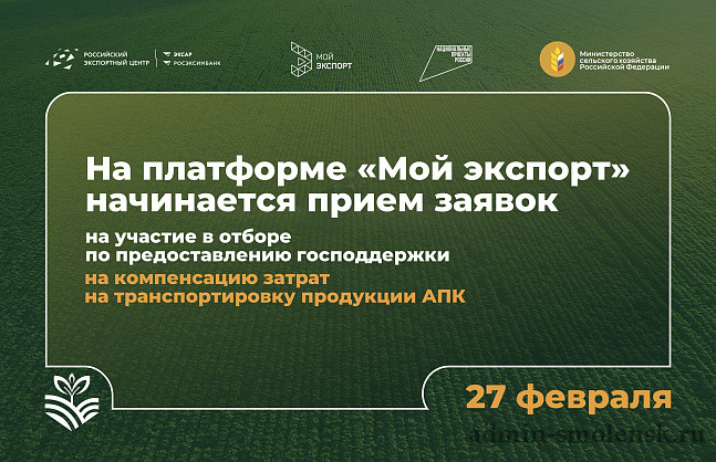 Министерство сельского хозяйства РФ опубликовало объявление об отборе получателей господдержки на транспортировку продукции АПК в 2026 году. Старт приема заявок: 26 февраля 2026 года в 09:00 (мск). Документы от экспортеров принимаются исключительно в электронном виде на цифровой платформе «Мой экспорт».